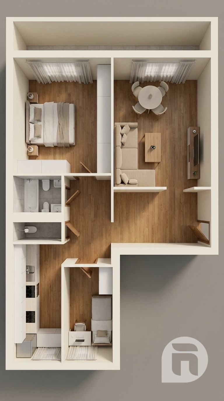 ➡️ Svetlo počas celého dňa + priečne vetranie.