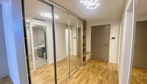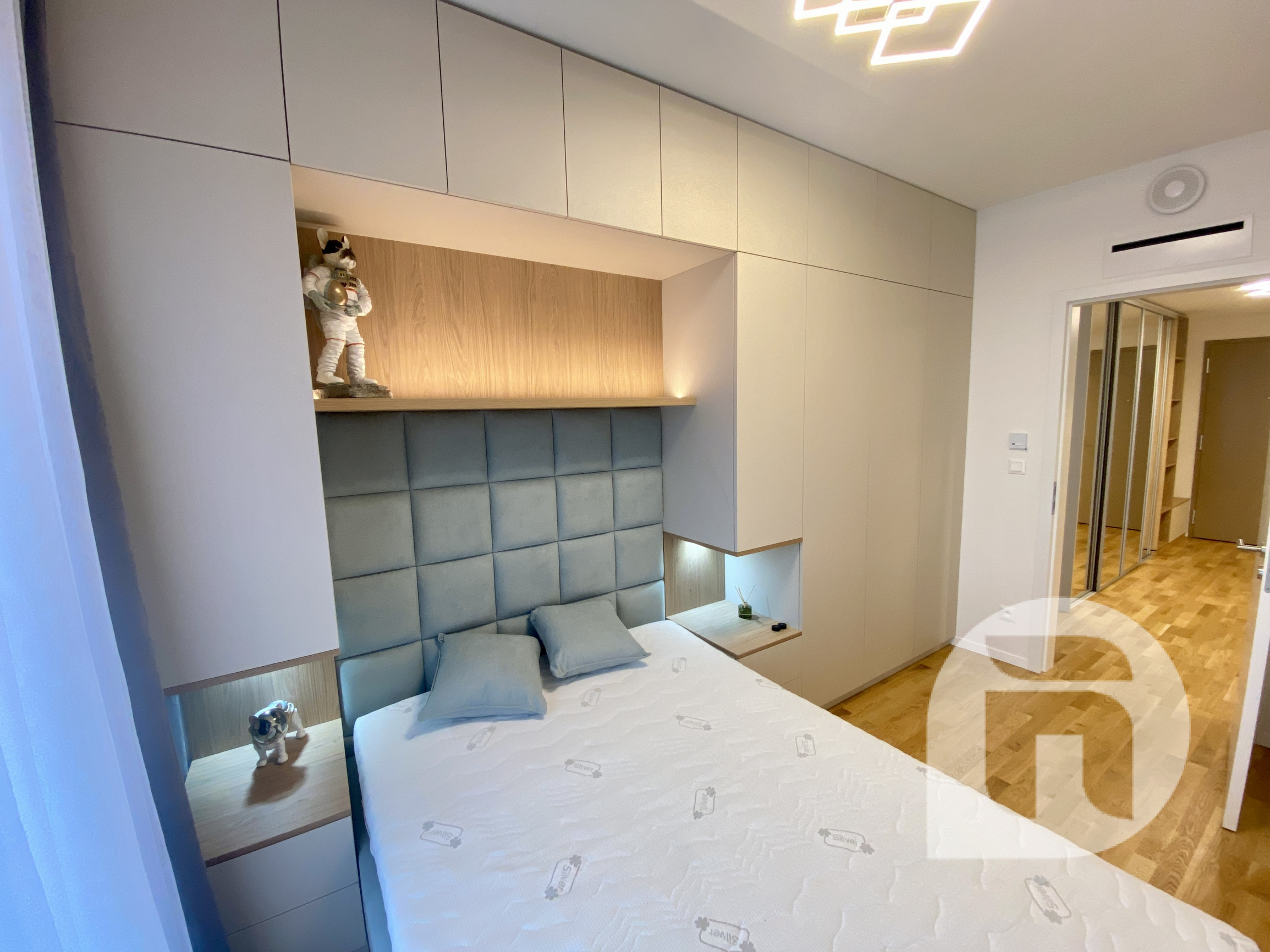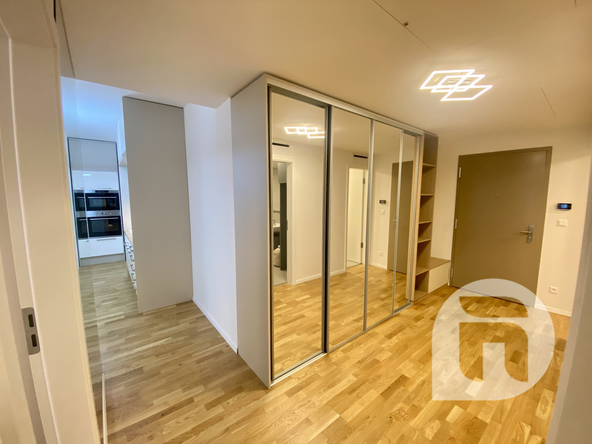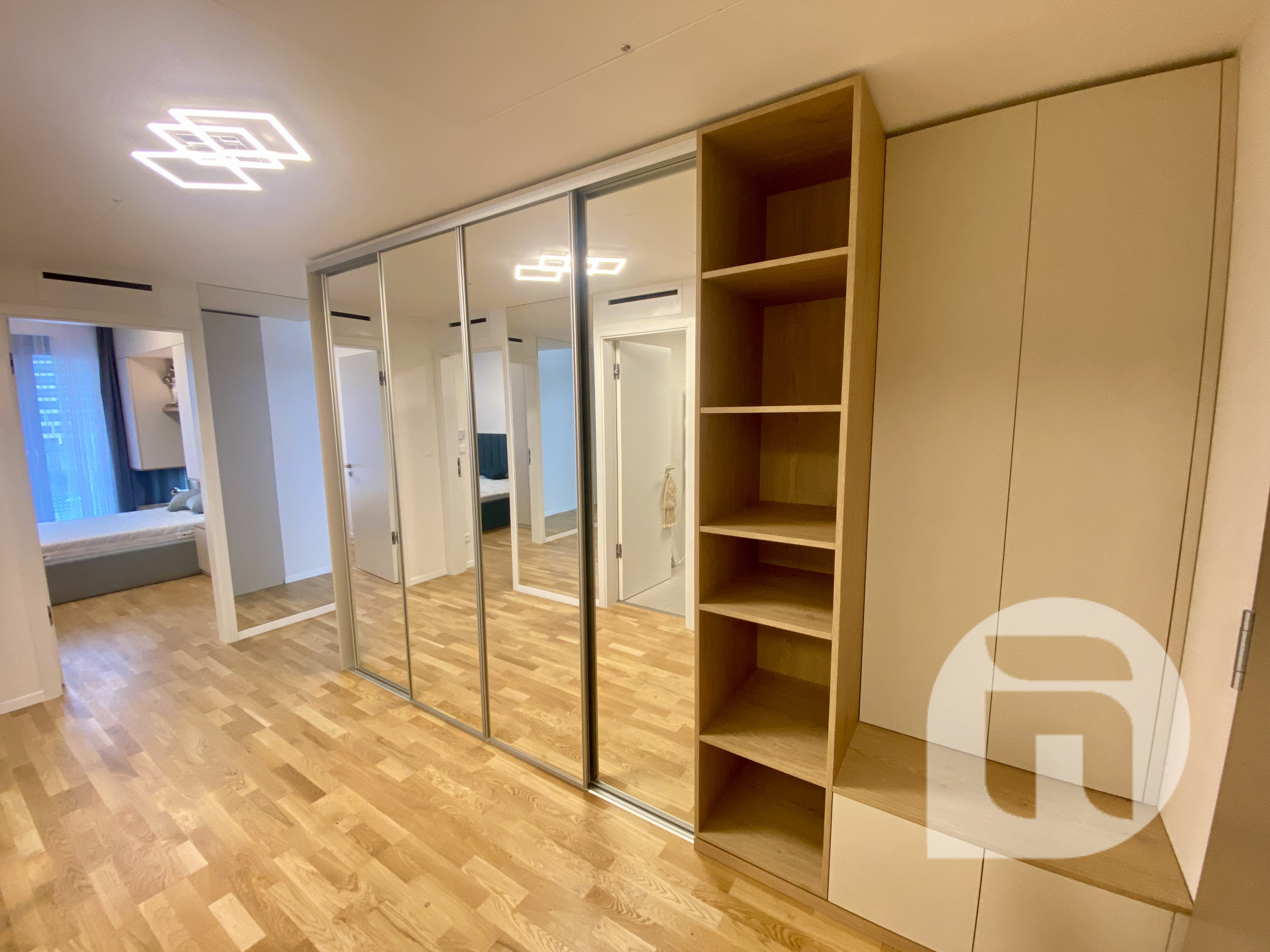 Byt, ako je vidno z fotiek a videí, je kompletne novo zariadený, vrátane designových doplnkov. Nebol nikdy pred tým obývaný. Byt bol zariadený na mieru vyrobenými nábytkami a skriňami, šatníková časť šikovne oddelená. Chodba a priestory sú prekryté veľkoformátovými zrkadlami na vstavaných šatníkových skriniach, čo zabezpečí okrem funkčnosti opticky väčšie a vzdušnejšie priestory. Kvalitná a štýlová kuchyňa zn. Dan Kuchen od Atmosfera studio, viacero na mieru vyrobených a osadených doplnkov, skrinky pod TV, luxusná kuchyňa so stredovým ostrovčekom a vstavanými spotrebičmi.