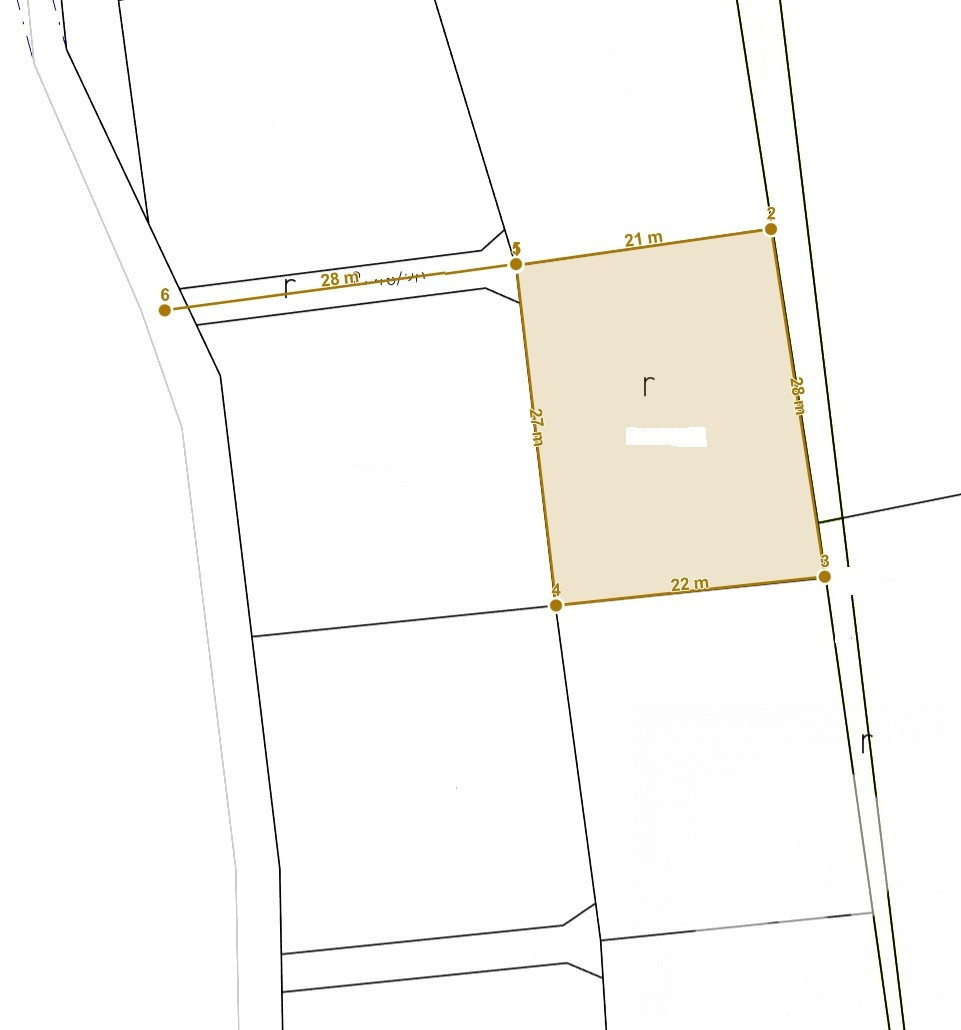 Pozemok je štvorcového pravidelného tvaru o rozmeroch = dĺžka 21 m x šírka 28 m. Orientácia je na juh, čiže pozemok je príjemne presvetlený po celý deň.