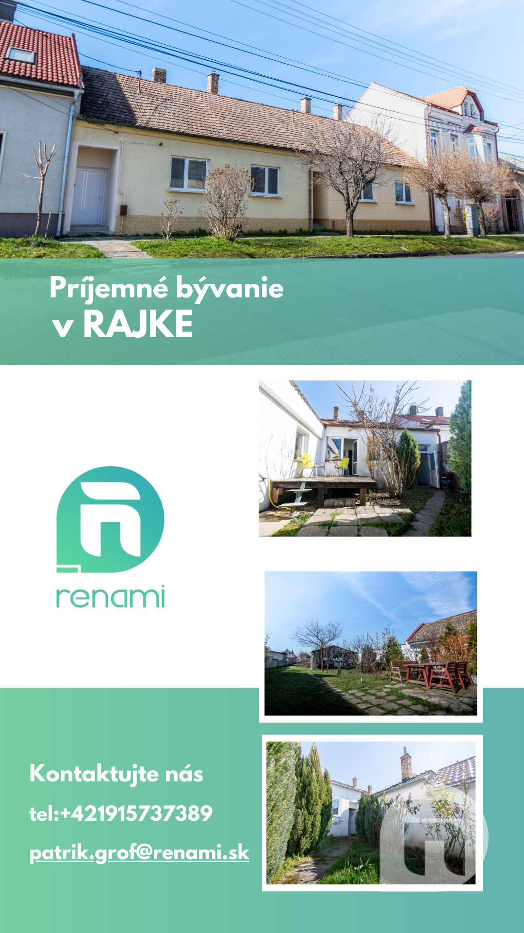 Predstavujeme Vám na predaj 3-izbový rodinný dom vo vyhľadávanej lokalite centra obce Rajka na ulici Dozsa Gyorgy. RD je po čiastočnej rekonštrukcii pripravený k zabývaniu s celkovou výmerou 157 m2 v osobnom vlastníctve a pozemok - dvor a záhrada o výmere 1392 m2.