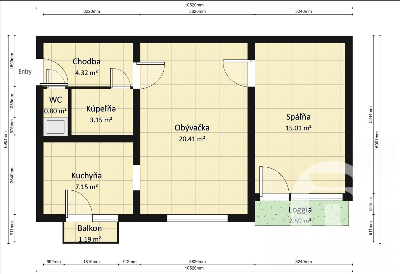 Veľkou výhodou je balkón aj loggia – dve samostatné exteriérové plochy, ktoré poskytujú priestor na relax aj úložný komfort. Dispozícia zároveň ponúka potenciál na prerobenie na 3-izbový byt.