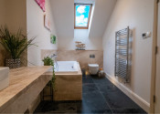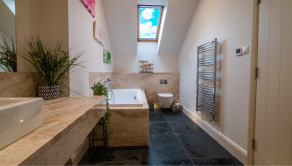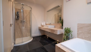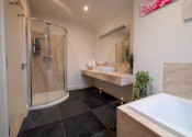 hlavná spálňa s vlastnou kúpeľňou (sprcha + WC),