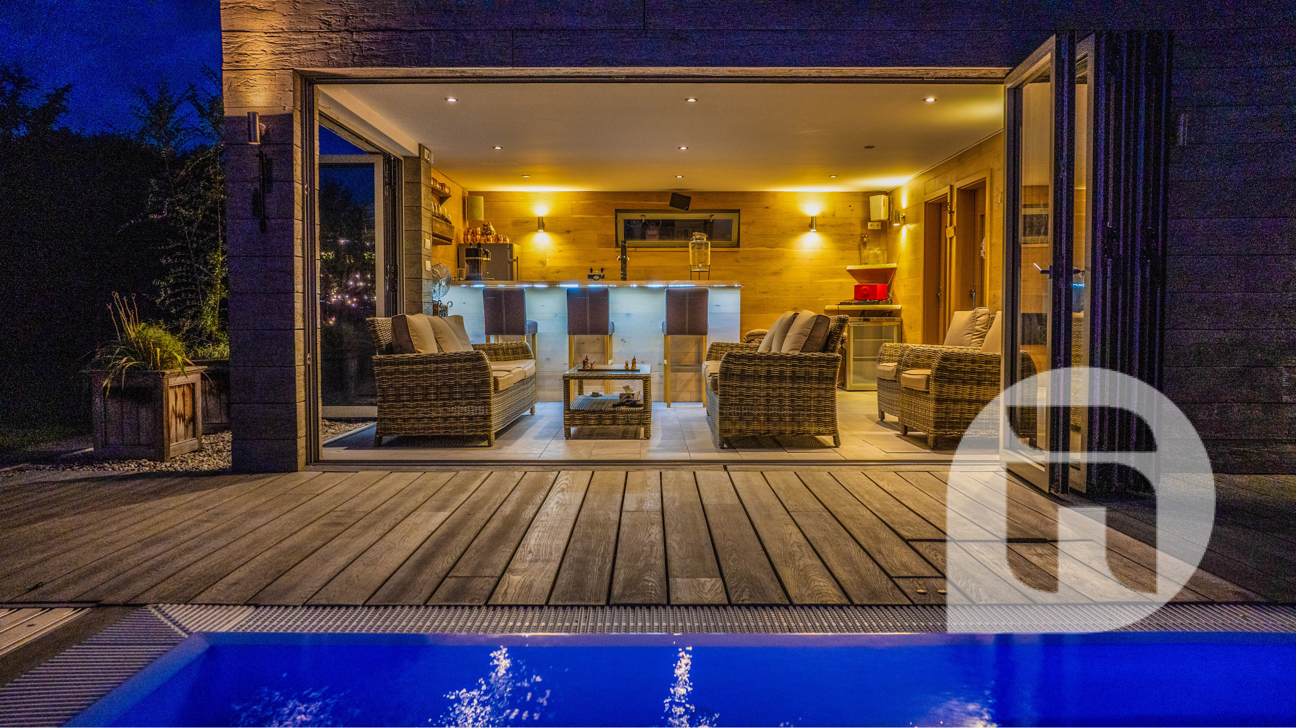 letná kuchyňa – kompletne vybavená , ideálne využitie na oslavy či využitie pri bazéne,