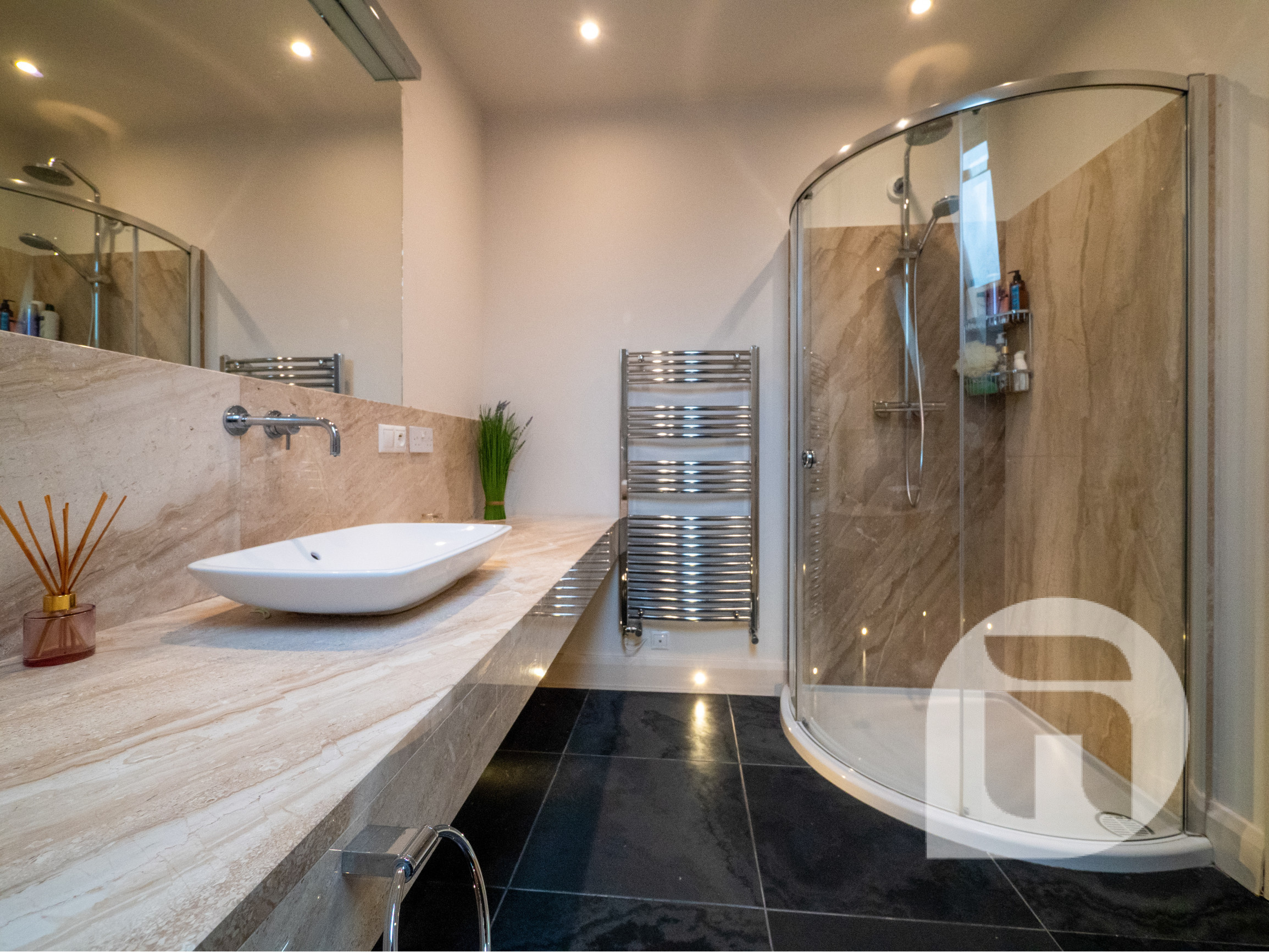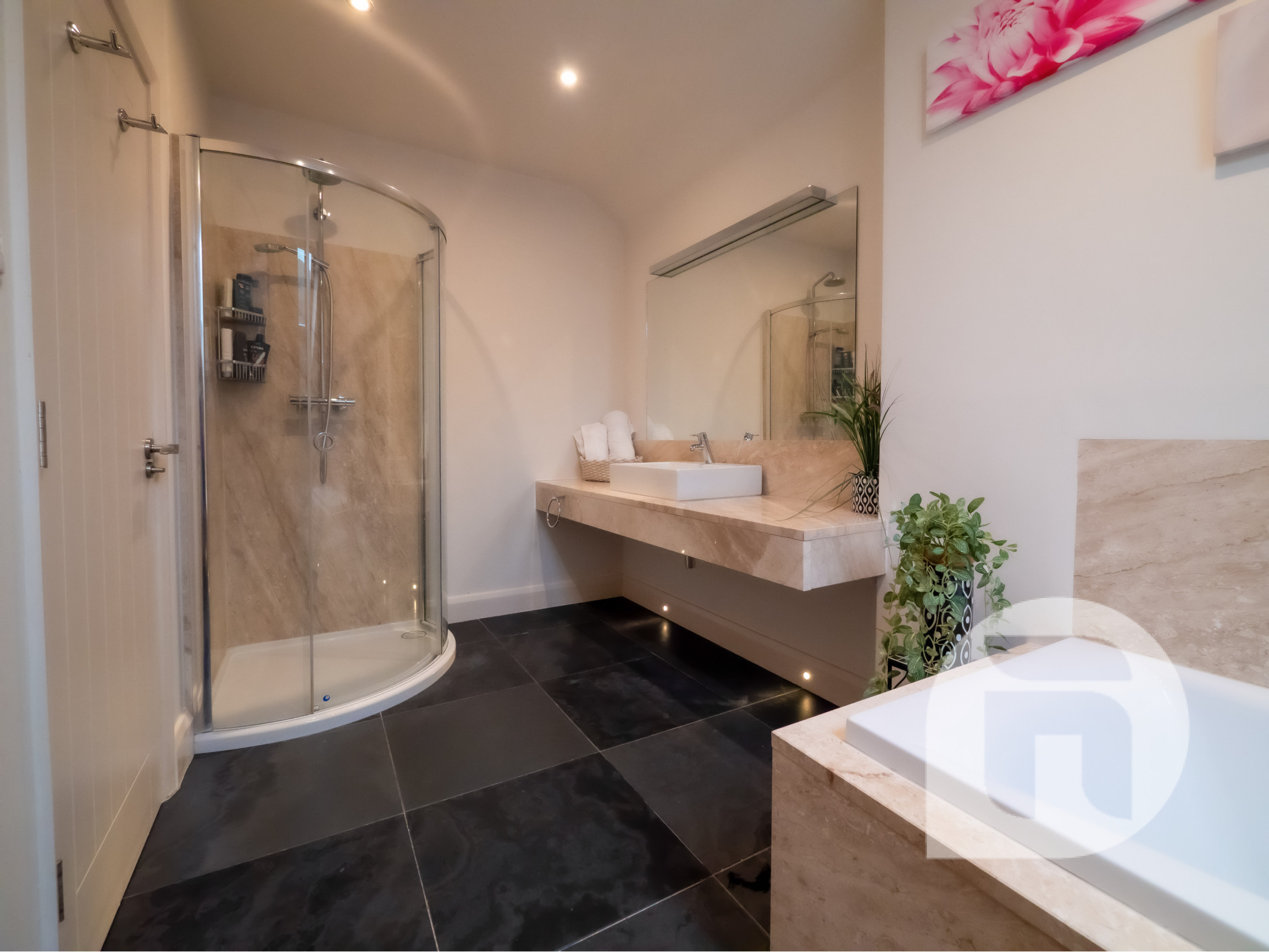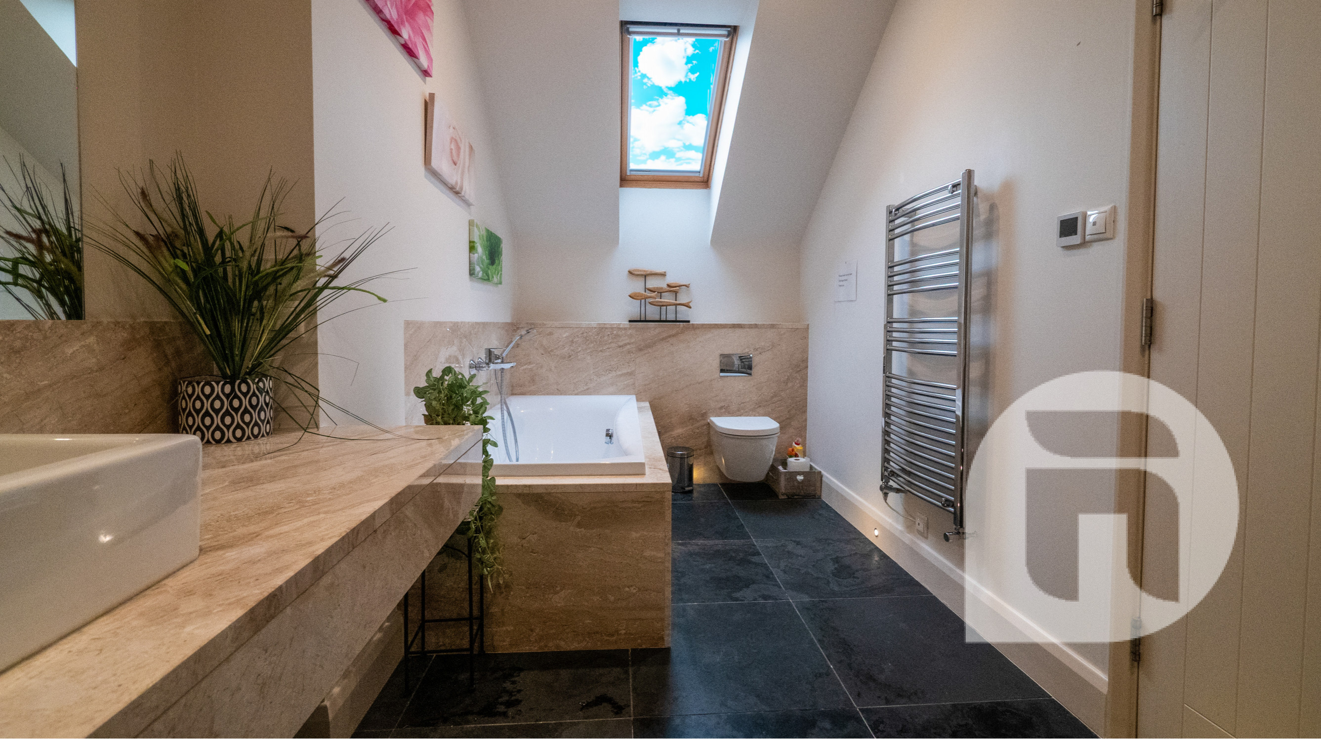 👉 Spolu: 7 izieb, 4 kúpeľne v dome + WC na každom poschodí + salónik domček s barom a WC (s prípravou na výhodnú) .