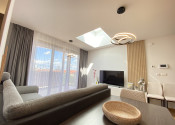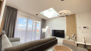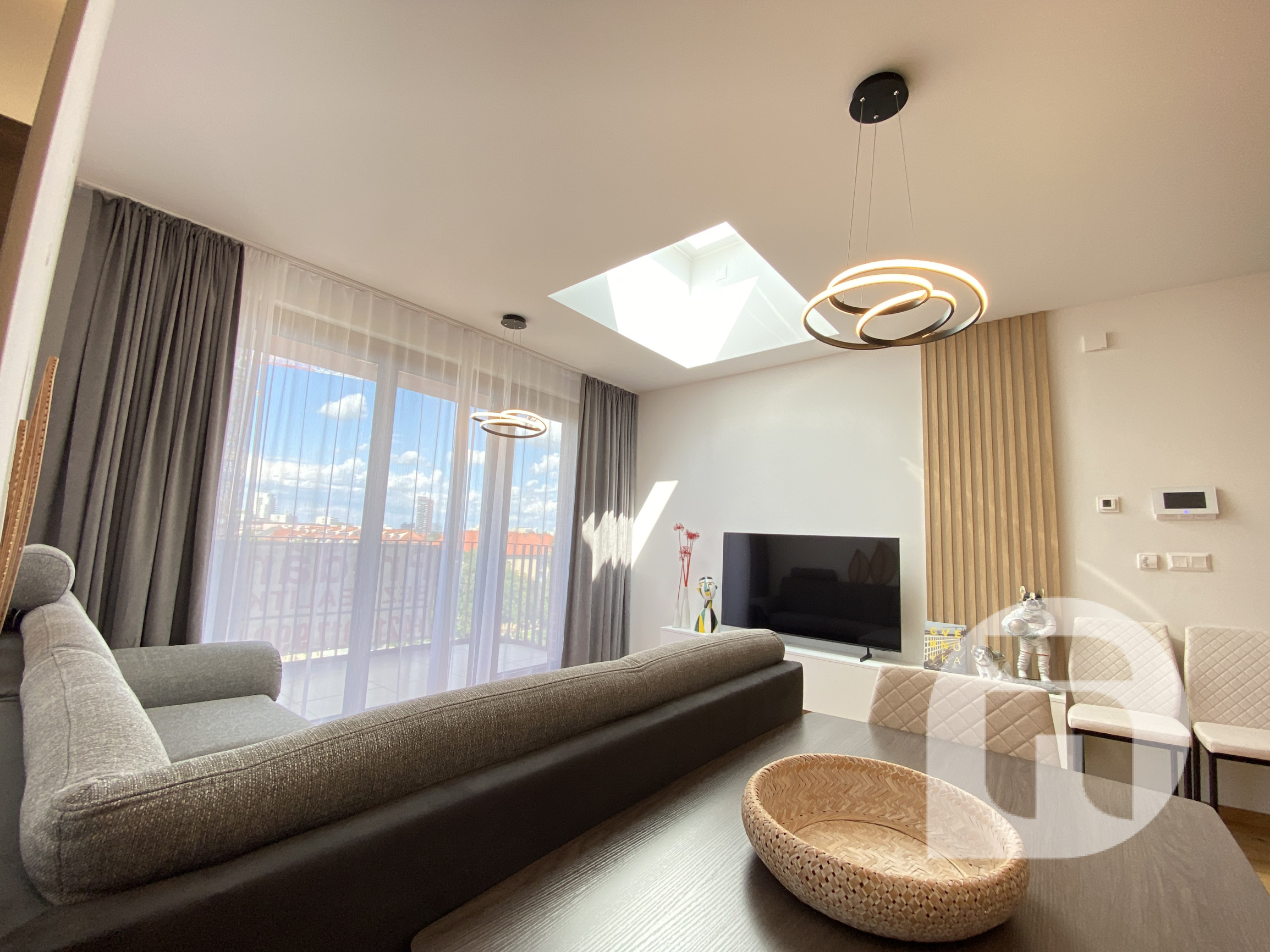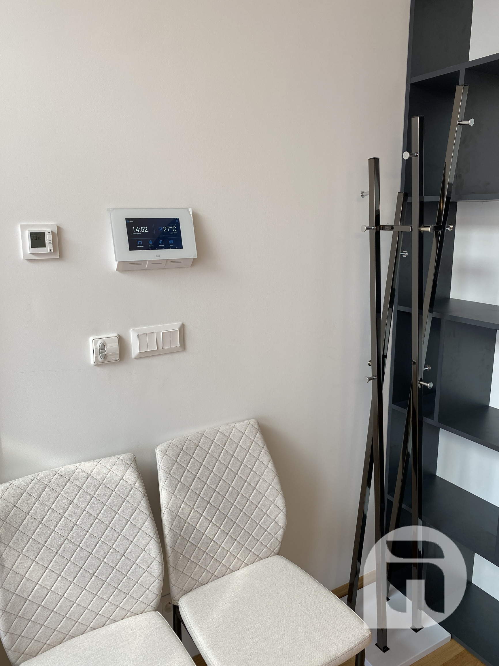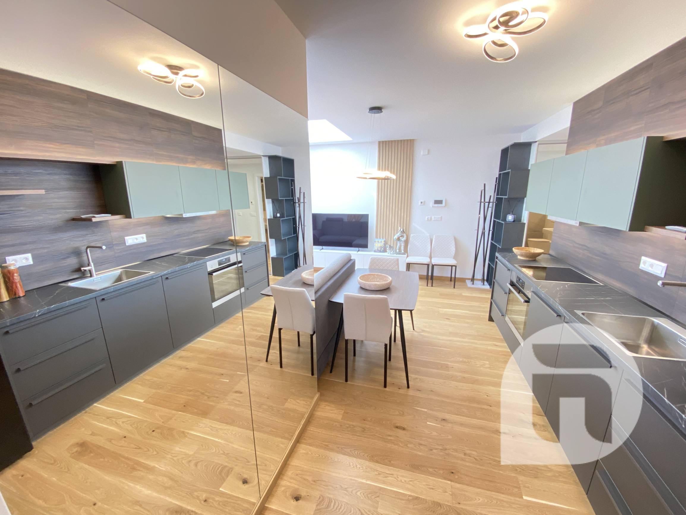Byt, ako je vidno z fotiek a videí, je kompletne novo zariadený, vrátane designových doplnkov. Nebol nikdy pred tým obývaný. Byt bol zariadený na mieru vyrobenými nábytkami a skriňami, šatníková časť šikovne prekrytá veľkoformátovými zrkadlami, čo zabezpečí okrem funkčnosti opticky väčšie a vzdušnejšie priestory. Kvalitná a štýlová kuchyňa zn. Dan Kuchen od Atmosfera studio. V rámci ďalšej nadštandardnej výbavy bytu je stropné chladenie a podlahové kúrenie. Na podlahy v byte boli použité drevené parkety a v kúpelni kvalitné dlažby a obklady vrátane kompletnej sanity.
