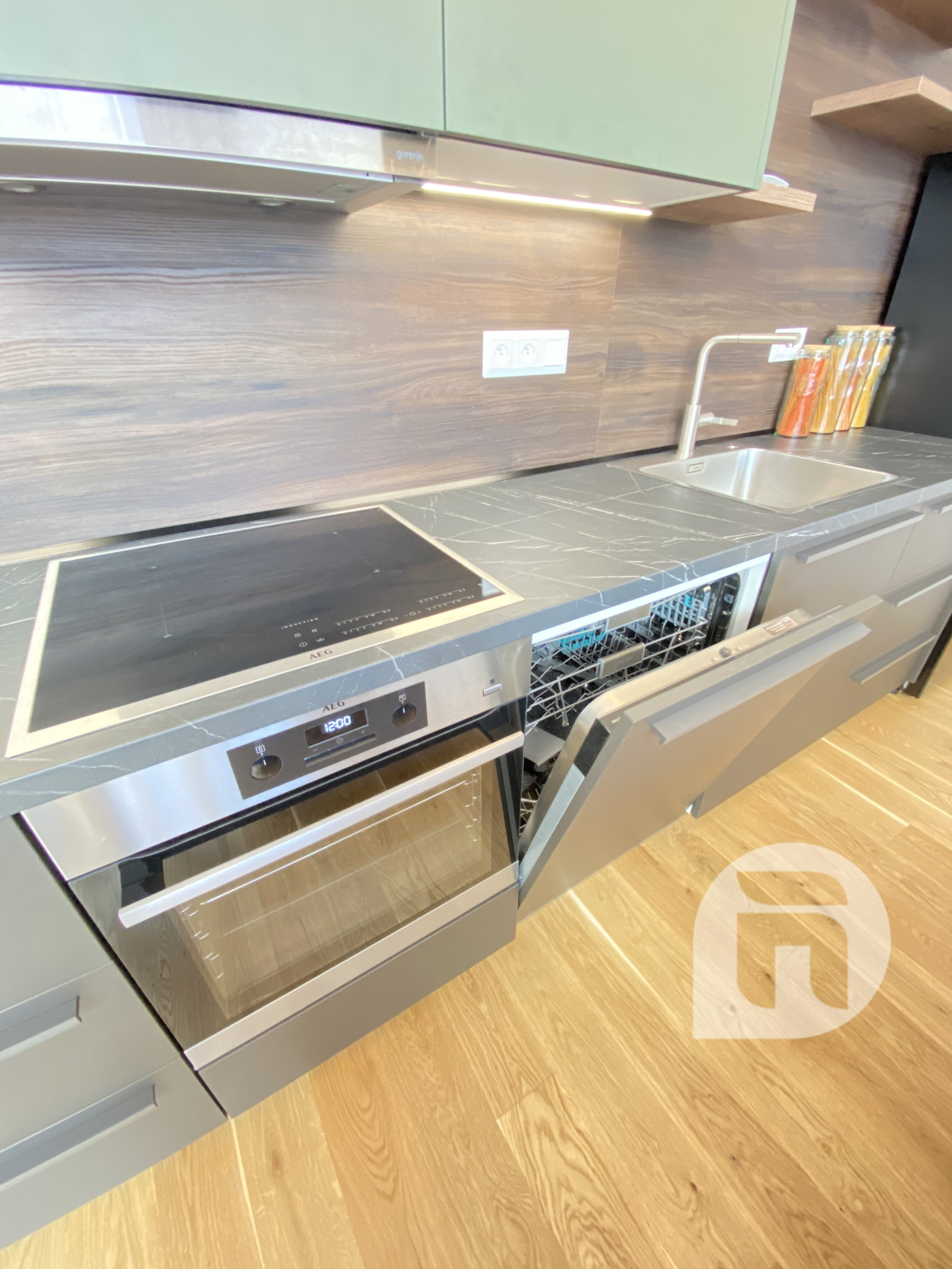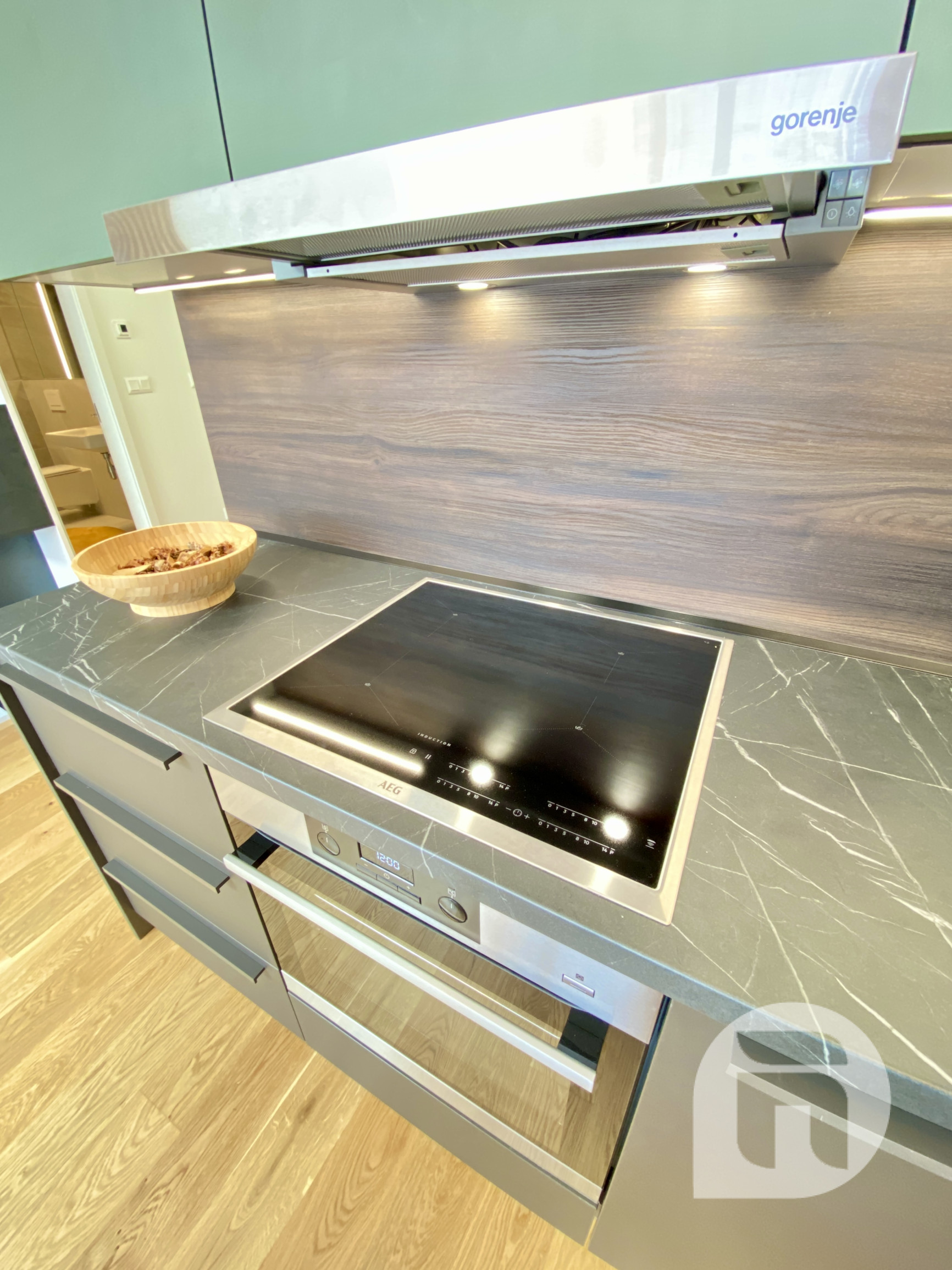 Spotrebiče – teplovzdušná rúra zn. AEG, sklokeramicka indukčná varná doska tiež zn. AEG, digestor a chladnička s mrazničkou zn. Gorenje,