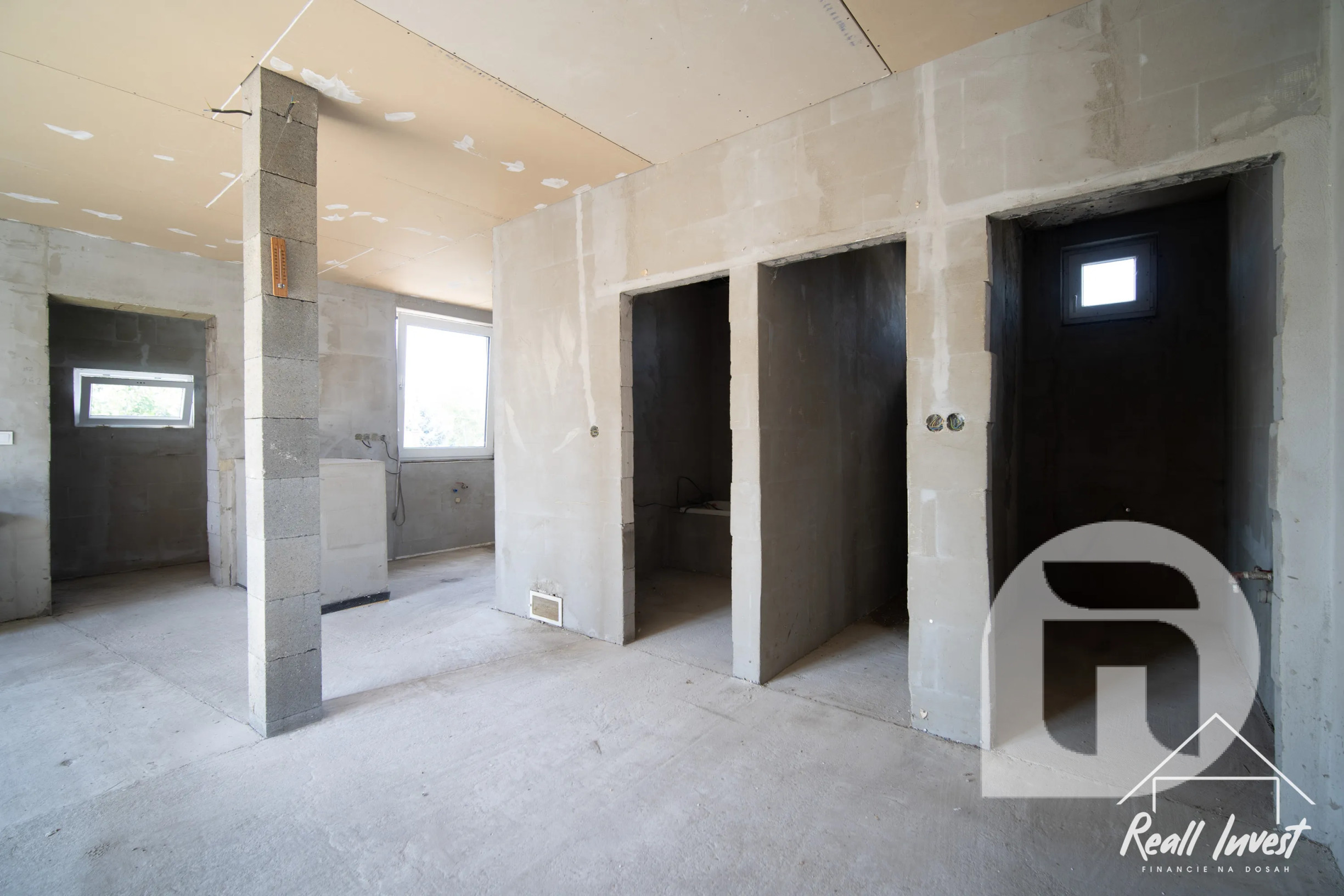 2. podlažie: holodom pripravený na dokončenie podľa vlastných predstáv (obývacia časť s kuchyňou, 2 izby, kúpeľňa, WC, technická miestnosť).