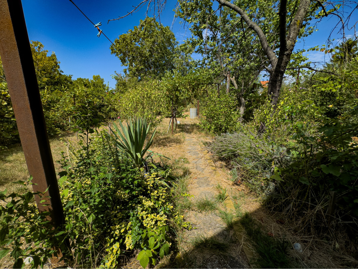 Pozemok o výmere cca 400 m² (10 × 40 m) je rovinatý, oplotený a slnečný. Na pozemku vinič, ovocné stromy a studňa. Elektrina je na pozemku (vrátane 380 V), kanalizácia pred vstupom na pozemok. Parkovanie pred pozemkom pre 3 autá.