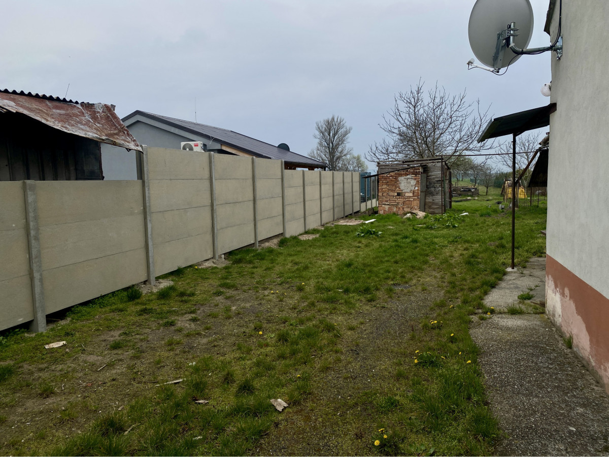 Dom s úžitkovou plochou 193 m² stojí na pozemku 654 m², ku ktorému patrí ďalšia orná pôda o výmere 2 252 m² — spolu takmer 30 árov rovinatého terénu. Záhrada s rozmermi 16 × 40 m je ideálna na pestovanie, chov zvierat či vybudovanie skleníka.